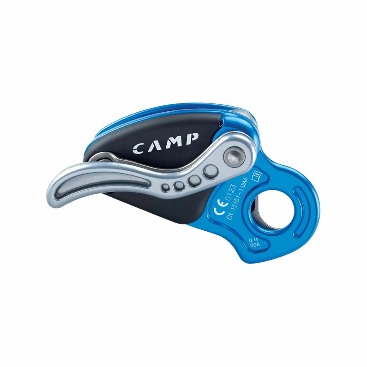 Also unlike standard auto-locking devices, the Matik’s assisted braking cam runs parallel with the rope instead of at an angle, thereby increasing contact and decreasing rope-ruining friction. The wide carabiner hole has a unique design that prevents clipping and unclipping while the device is closed. Camp USA crafted this revolutionary device out of hot-forged aluminum and precision-cast stainless steel for the critical components that come in contact with the rope.